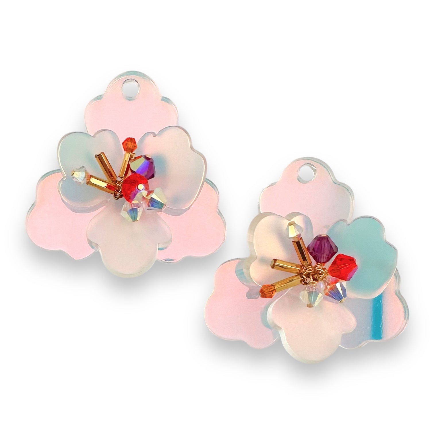 quirky hand drawn laser cut acrylic flowers with crystal dangles