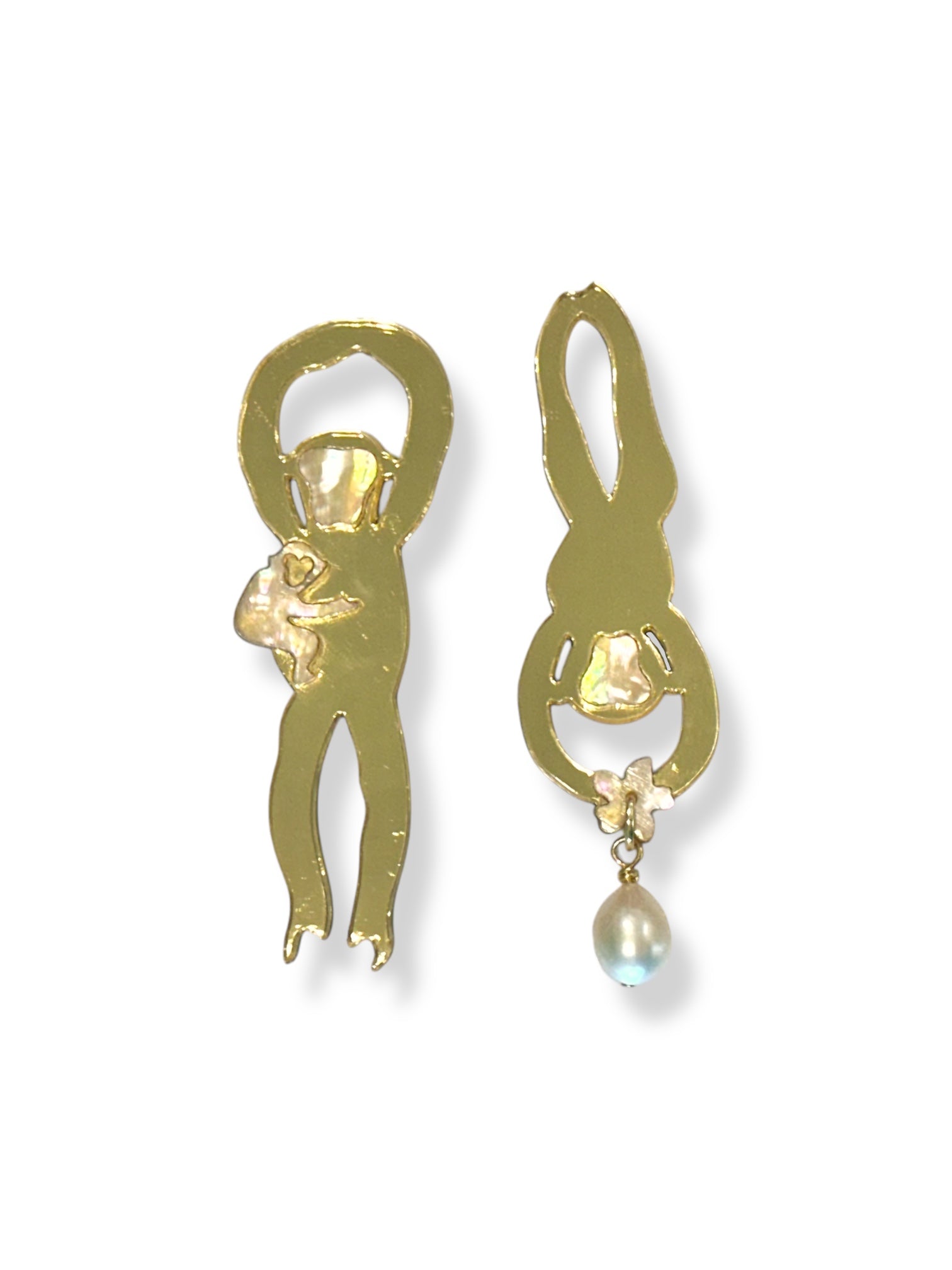 quirky mama and baby monkeys with shell veneer, a freshwater pearl and wood backed