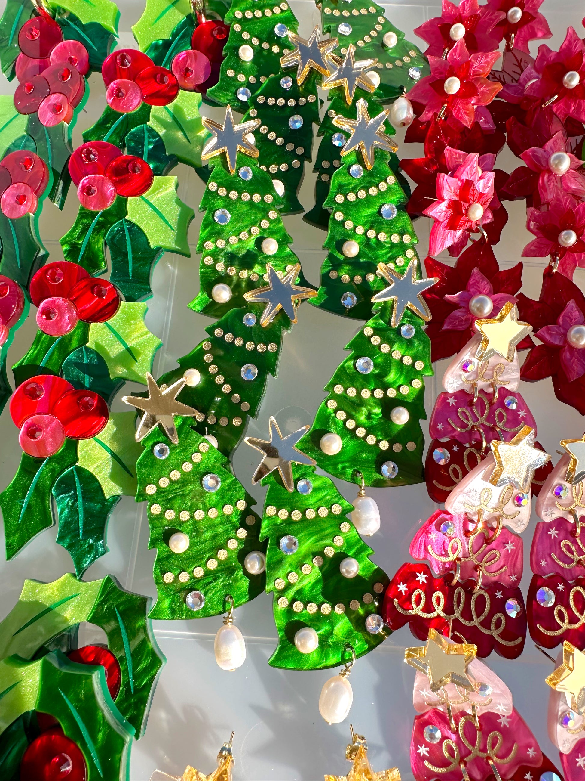 quirky trees embellished with hand painted details, crystals & crystal dangles