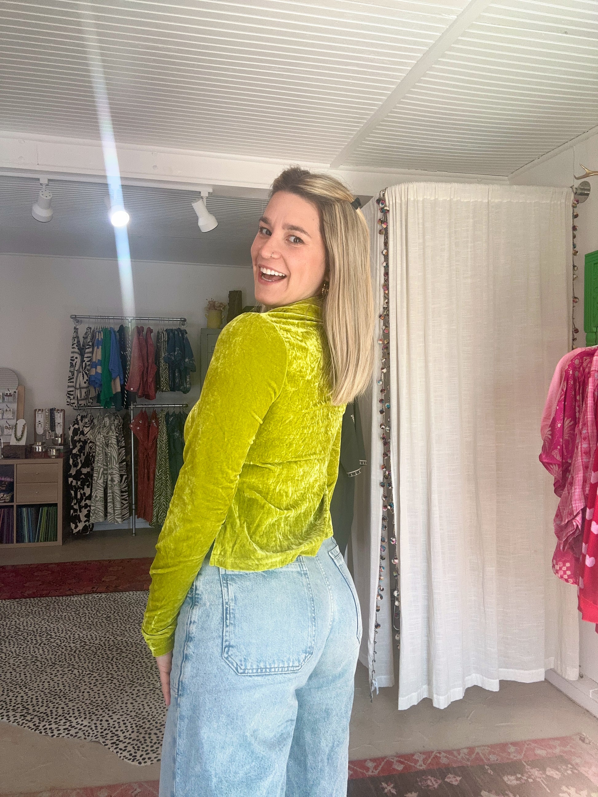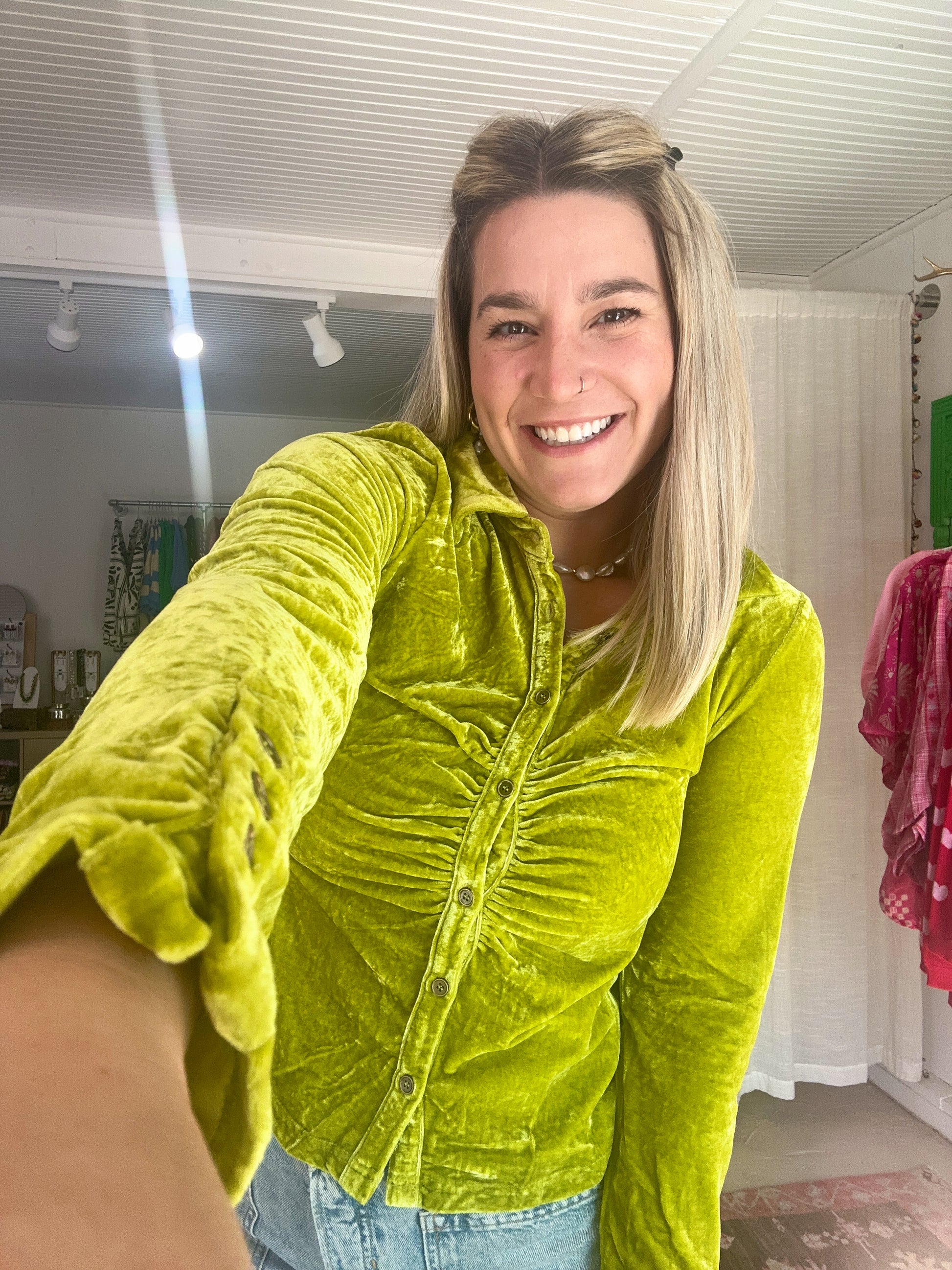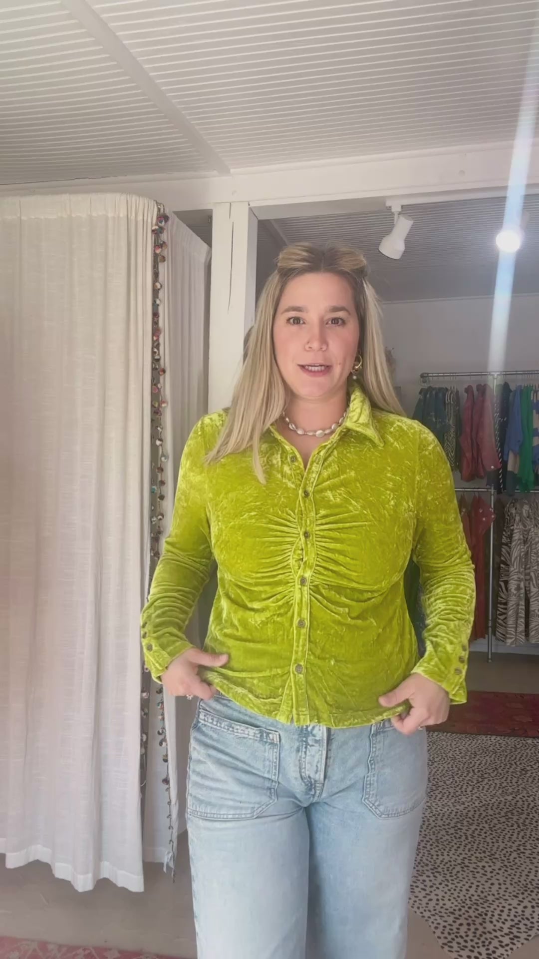 ruched front with functional buttons