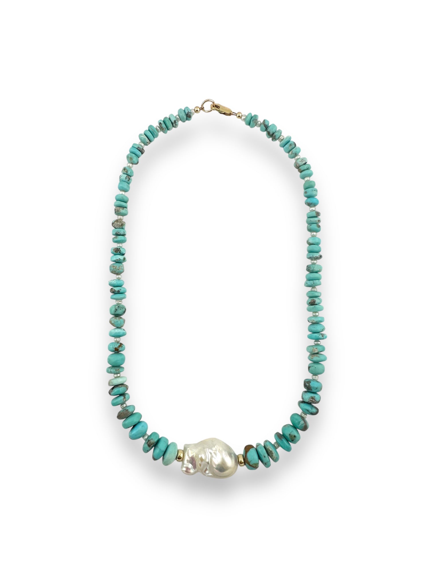 Sleeping Beauty Arizona Turquoise with XL Freshwater Baroque Pearl